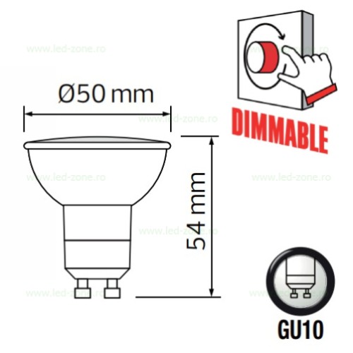 Specificatii Bec Spot LED GU10 8W Clar 220V Dimabil VISION
