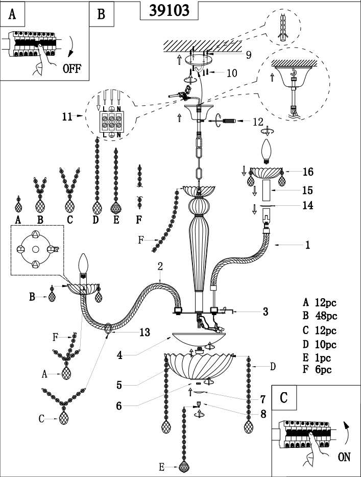 Specificatii Candelabru 18 Socluri E14 Basilano LZ39103