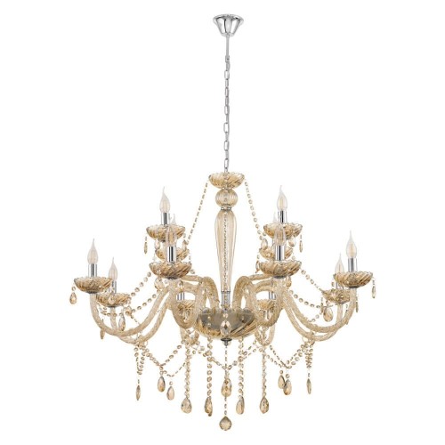 Candelabru BASILANO 39094, Ø1000 mm, E14, 12X40W, IP20, oțel crom, sticlă cognac