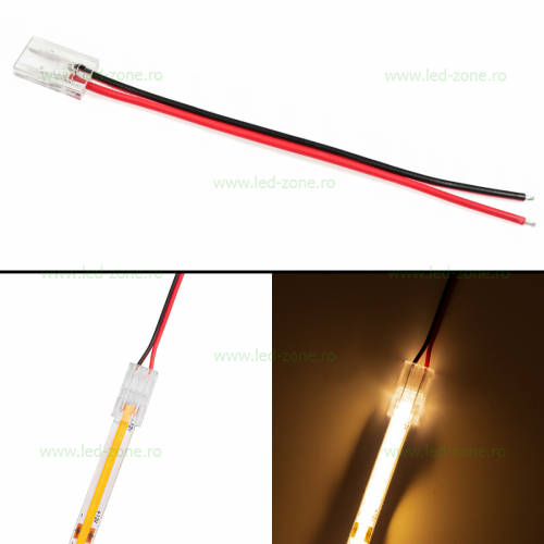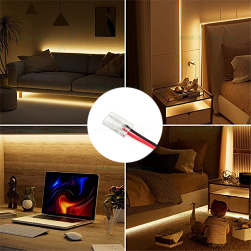 Conectorul este folosit in aplicatii de interior pentru banda led COB cu latime 8mm, 2 fire.