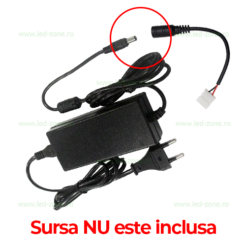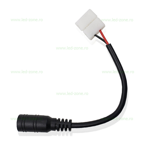 Conector folosit pentru alimentarea benzilor cu SMD 2835 / 3014 prin clipsare, iar la celalalt capat (mufa mama) poate fi alimentat foarte usor cu o sursa plastic.