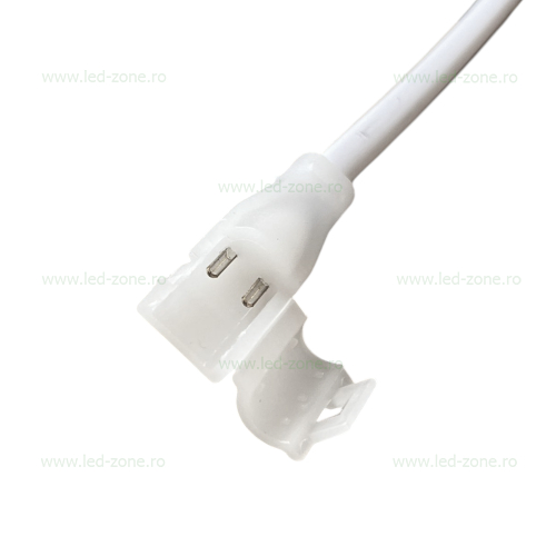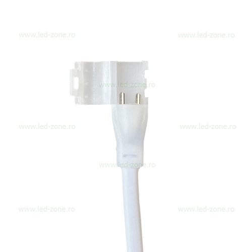 Conector folosit pentru imbinarea benzii COB Slim la 220V, prin clipsare.