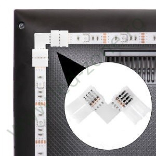 Conector folosit pentru imbinarea benzilor SMD 5050 RGB la un unghi de 90 grade.