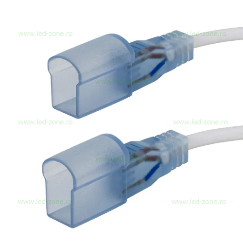 Conectorul de imbinare cu 2 fire pentru Neon Flex LED cu alimentare la 220V, permite imbinarea a doua segmente de furtun pentru schimbarea directiei la montaj.