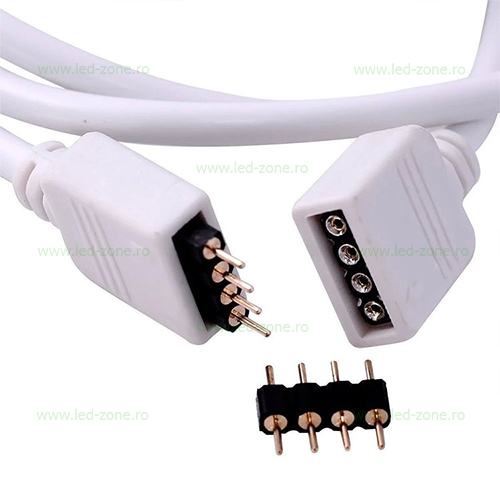 Conector folosit pentru prelungirea benzilor SMD 5050 RGB din controller sau pentru a conecta doua benzi SMD 5050 RGB intre ele (max. 10m) pentru a nu se pierde intensitatea spre sfarsitul benzii. Cablul are 5 metri lungime.