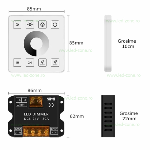 Descriere Controller Banda LED Monocrom 30A 360W cu Telecomanda de Perete