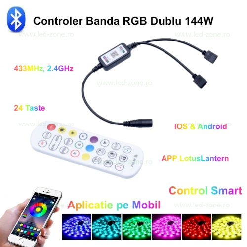 Descriere Controller Banda LED RGB 12A 144W WI-FI si Telecomanda RF 2 Iesiri