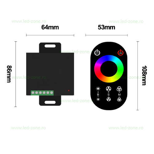 | Pachetul contine | 1x controller, 1 x telecomanda touch RF, 1x conector alimentare 4 pini |