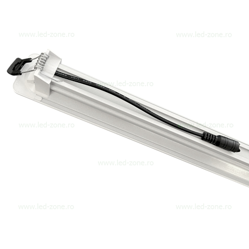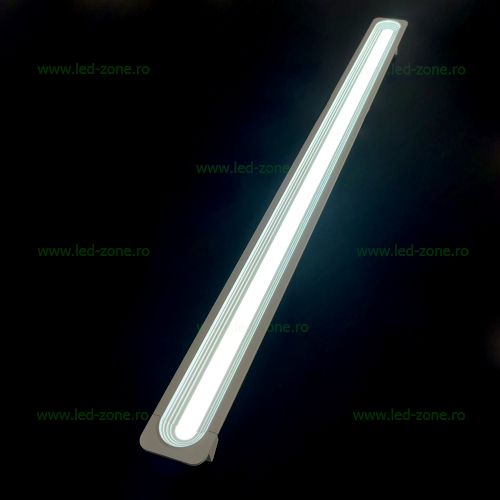 Corpul iluminat LED cu montaj încastrat are un design liniar, destinat iluminării generale în spații comerciale, birouri, holuri sau locuințe. Are o putere de 28W și emite lumină rece 6500K, oferind o iluminare clară și eficientă.