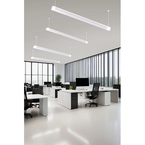 Corp iluminat LED de 72W cilindric, cu o lungime de 120 cm, este o soluție eficientă și modernă pentru iluminarea spațiilor de dimensiuni medii, cum ar fi birouri, holuri sau bucătării.