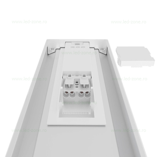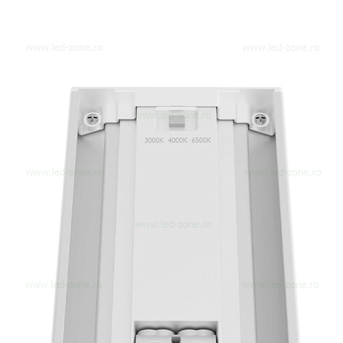 Un avantaj major il reprezinta functia CCT, care permite selectarea culorii luminii dorite (alb cald 3200K, alb natural 4200K sau alb rece 6400K) printr-un buton pozitionat pe spatele corpului de iluminat. Astfel, produsul se adapteaza perfect atat pentru spatii comerciale, cat si rezidentiale.