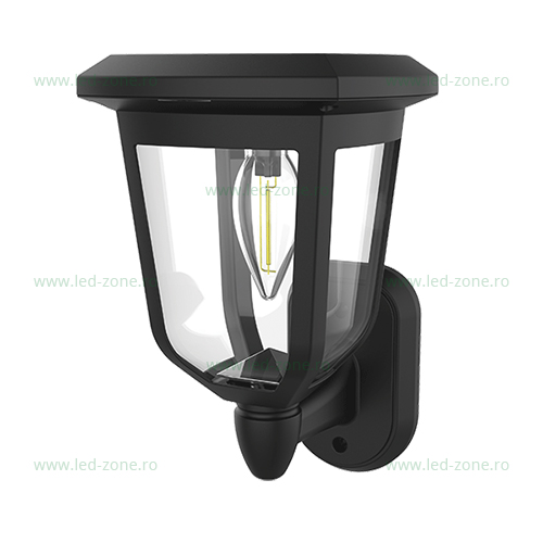 Descriere Felinar Iluminat Exterior 0.3W Perete Negru Solar LZ23405