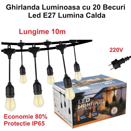 Instalatia LED Ghirlanda este solutia perfecta pentru impodobirea casei, la exterior, avand un design placut cu 20 de becuri clare cu filament LED.