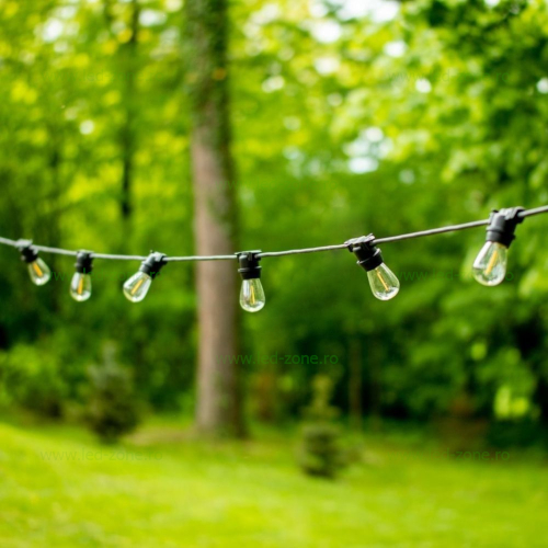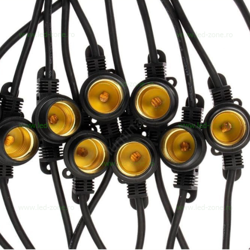Ghirlanda de 10 metri cu 15 fasunguri E27 si cablu de alimentare la 220V. Acesta este foarte rezistent si va permite montarea diferitelor modele de becuri E27.