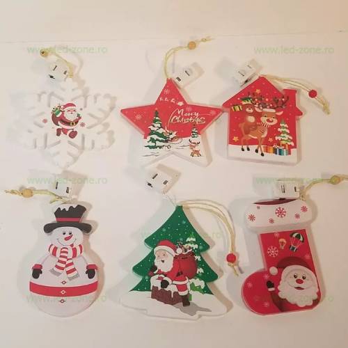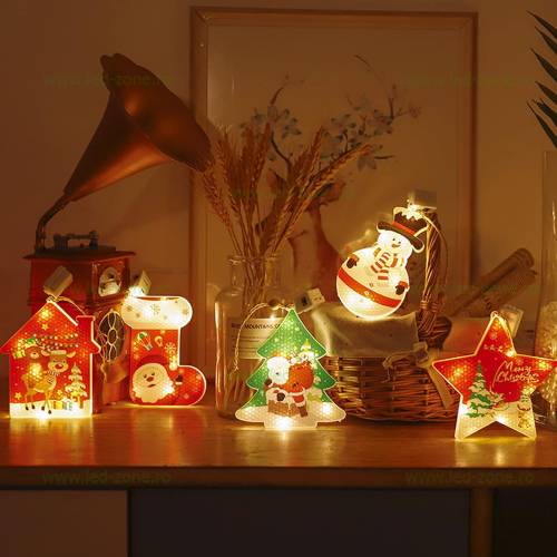Set 6 figurine sarbatori cu Instalatie LED multicolor - casuta, stea, gheata, bradut, clopotel si om zapada..
