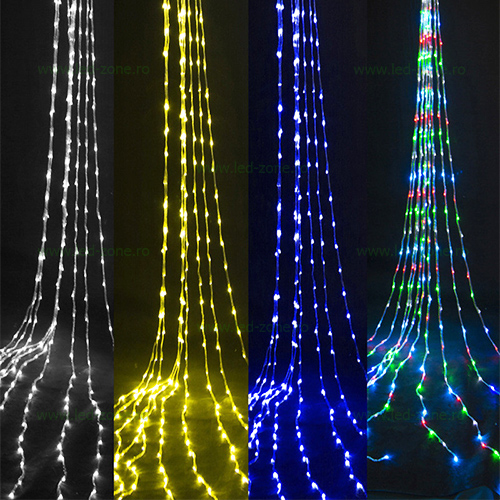 Instalatie LED perdea tip ploaie, dimensiuni 3X1m, 120 LED-uri, diverse culori, interconectabila.