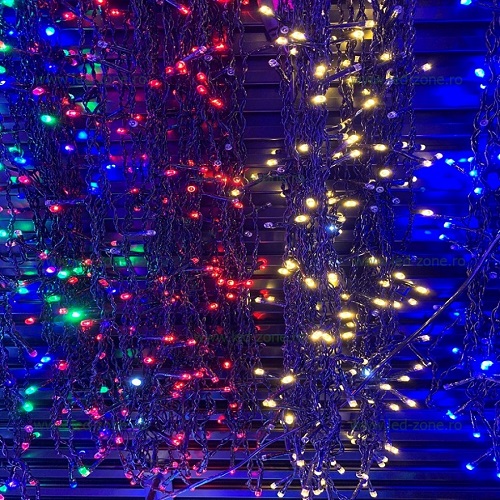 Instalatie LED perdea tip turturi, lungime 3m, 96 LED-uri, diverse culori, fir negru, se pot conecta maxim 5 instalatii.