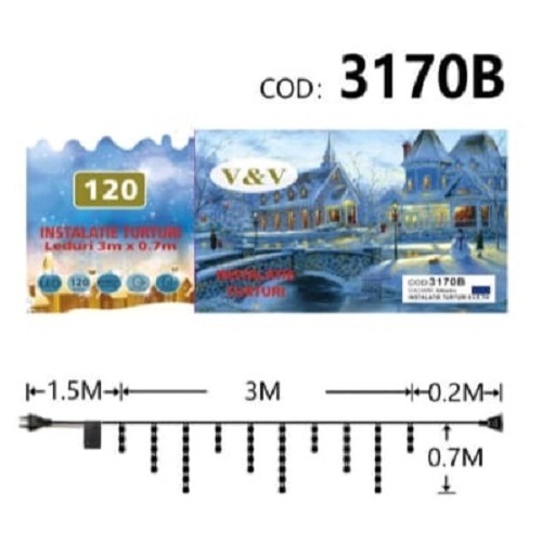 Specificatii Instalatie LED Perdea Turturi 3x0.7m Diverse Culori Fir Alb
