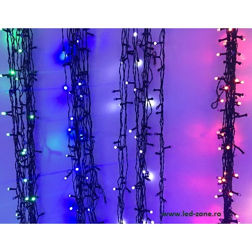 Instalatie LED perdea turturi, lungime 3x3m, 352 LED-uri, fir negru, diverse culori.