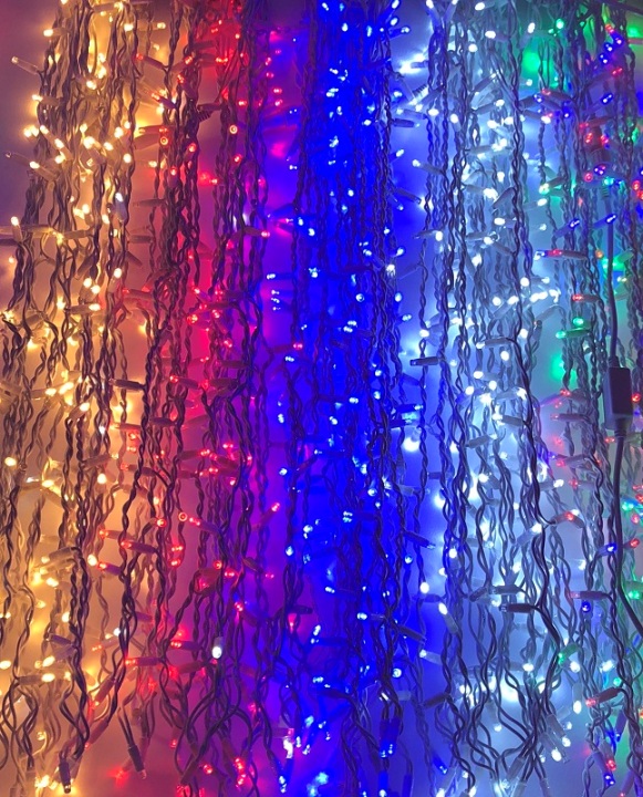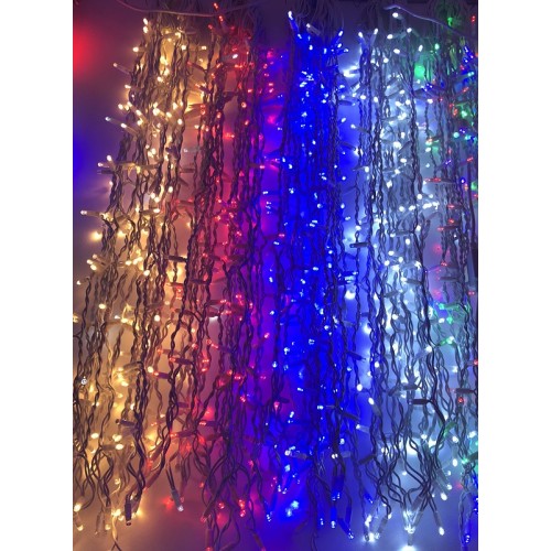 Instalatie LED perdea tip turturi, lungime 5x1m, 240 LED-uri, diverse culori, fir alb gros, se pot conecta maxim 5 instalatii.
