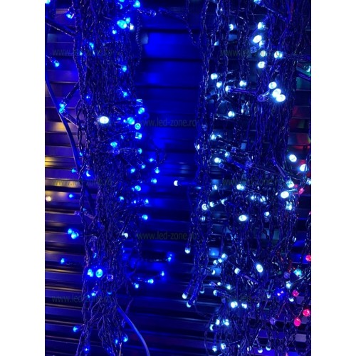 Instalatie LED perdea tip turturi, lungime 5x1m, 240 LED-uri, diverse culori cu flash pe alb rece, fir negru, se pot conecta maxim 5 instalatii.
