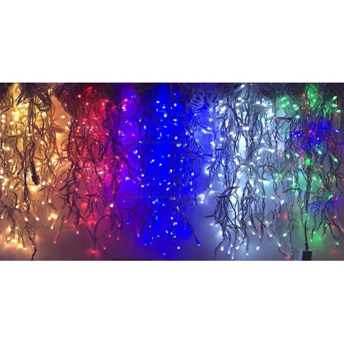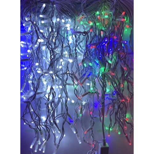 Instalatie LED perdea tip turturi, lungime 8x0.5m, 160 LED-uri, diverse culori, fir alb gros, se pot conecta maxim 5 instalatii.