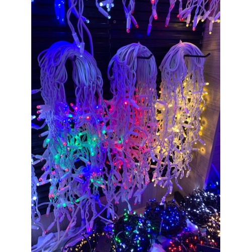 Instalatie LED perdea tip turturi, lungime 8x0.8m, 176 LED-uri, diverse culori, fir alb gros, se pot conecta maxim 5 instalatii.
