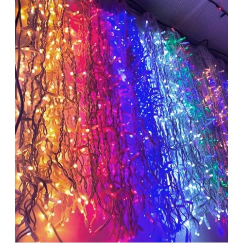 Instalatie LED perdea tip turturi, lungime 8x1m, 300 LED-uri, diverse culori, fir alb gros, se pot conecta maxim 5 instalatii.