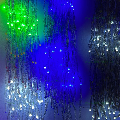 Instalatie LED perdea tip turturi, lungime 8x1m, 336 LED-uri, diverse culori, fir alb gros.