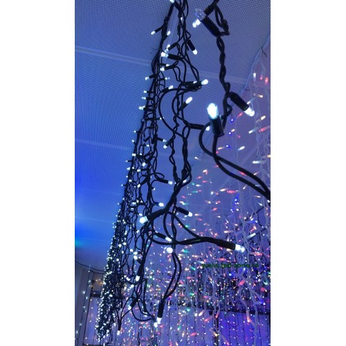 Instalatie LED perdea tip turturi pentru exterior, lungime 8x1m, 384 leduri, diverse culori cu efect flash pe lumina alb rece.