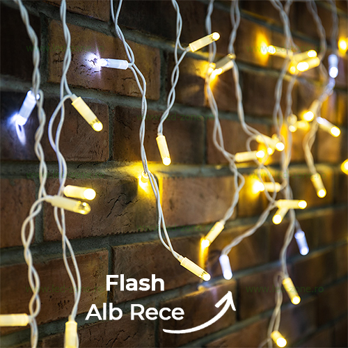 Lumina instalatiei este statica, are si LED-uri cu joc de lumini flash pe Alb Rece.