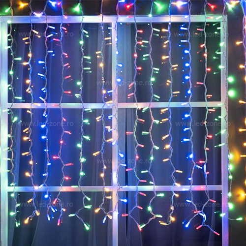 Instalatie LED perdea tip turturi, lungime 5x1m, 240 LED-uri, diverse culori, fir alb, se pot conecta maxim 5 instalatii.