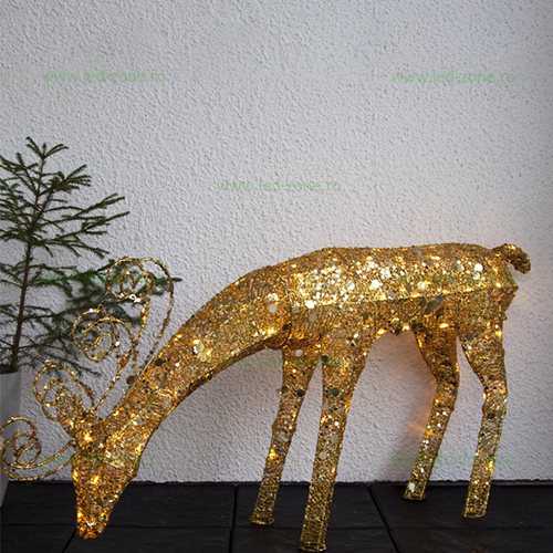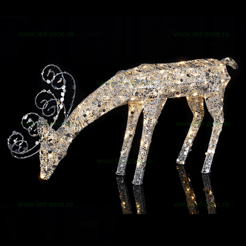 Ren pentru uz exterior. 1,16m înălțime cu 96 de lumini LED și paiete argintii. Perfect pentru a crea un peisaj de iarnă în grădina sau terasa ta.