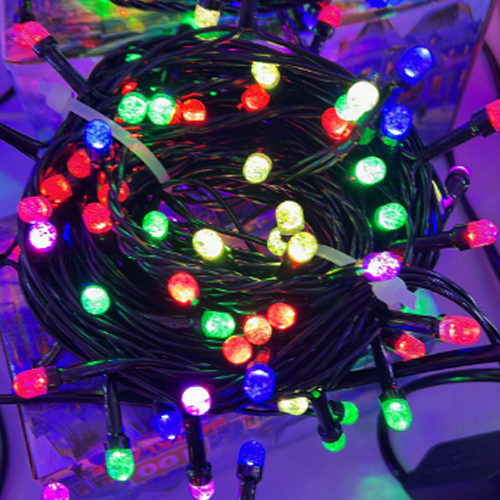 Instalatie pom Craciun 100 LED-uri cu 8 jocuri de lumini, poate fi folosita la interior si exterior, fir negru gros.