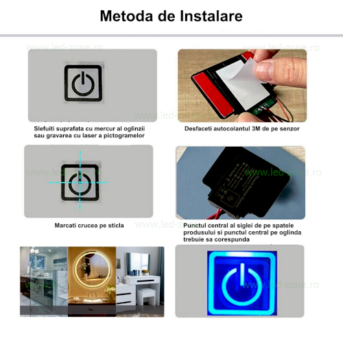 Utilizare recomandata: control iluminare LED pentru oglinzi cu lumina integrata, oglinzi de baie, oglinzi cosmetice sau oglinzi decorative moderne.