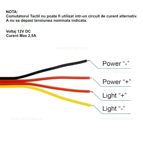 Specificatii Intrerupator LED cu Senzor Tactil si Variator 12V HST06