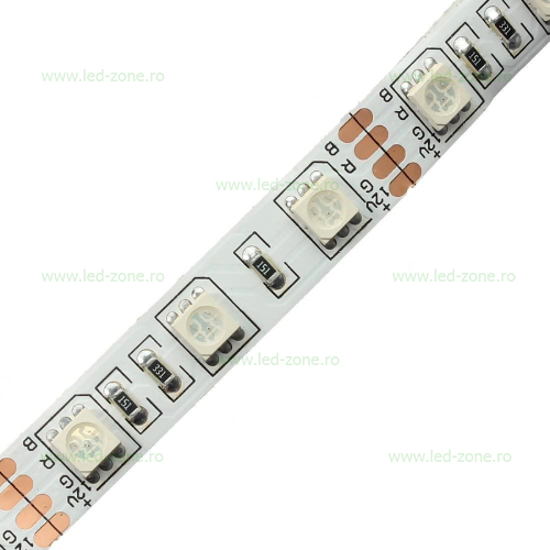 Utilizeaza cea mai versatila si atragatoare solutie de iluminat pentru proiectele tale ! Conecteaza aceasta banda la un controler RGB si vei avea cele mai fascinante efecte de schimbare a culorii. Cu banda RGB si controlerul atasat vei avea posibilitatea sa schimbi o varietate de culori uimitoare create din culorile rosu, verde si albastru. LED-Zone este mandru sa-ti ofere cea mai recenta tehnologie de iluminat cu LED-uri. Banda LED este cea mai noua solutie de iluminat disponibila si este deocamdata cel mai versatil produs al nostru. Banda LED flexibila 5050 poate fi taiata la fiecare 3cm, ceea ce o face ideala pentru diverse aplicatii personalizate. Dispunand de 60 LED-uri pe metru liniar, Banda LED 5050 iti ofera o aura stralucitoare de lumina pana la 90cm de la sursa, avand o putere de 460-540 lumeni pe metru liniar si un unghi al fasciculului de lumina de 120 grade.Suportul adeziv 3M este de inalta calitate si permite o instalare usoara a benzii pe orice suprafata plana.