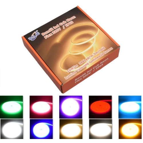 Specificatii Kit Banda LED COB 220V Slim Silicon Mat Autoadeziva 5m