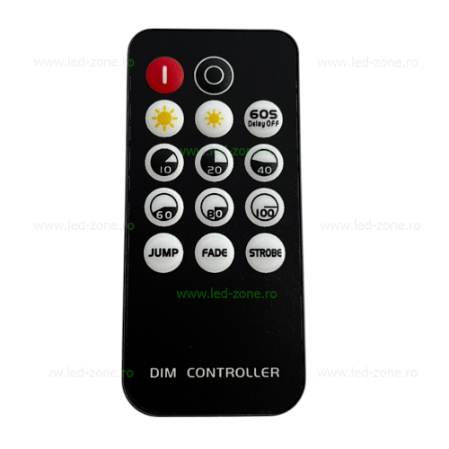 Telecomandă IR: 14 de butoane pentru ajustarea intensității, alegerea modurilor dinamice (jump, fade, stroboscop, culoare fixă) și control ON/OFF