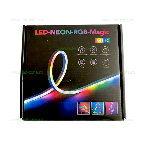 Tip bandă LED: Neonflex RGB Dream (digital adresabil), tehnologie RGBIC – permite afișarea simultană a mai multor culori de-a lungul benzii.