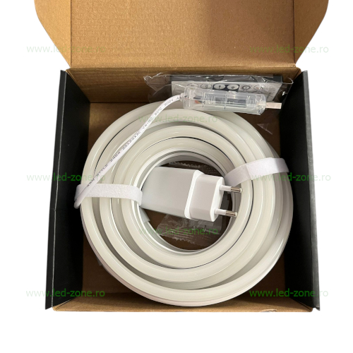 Pachetul Contine | 1 x Neonflex LED Digital(5m), 1 x Alimentator 220V, 1 x Controller Muzical, 10x Cleme fixare plastic |