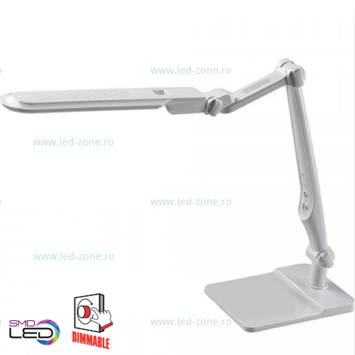 Lampa Birou LED 10W 3 Functii va permite alegerea unei nuante de lumina intre alb cald, alb natural sau alb rece cu ajutorul unui comutator tactil. Lampa are brat flexibil, material ABS cu finisari deosebite lucioase.