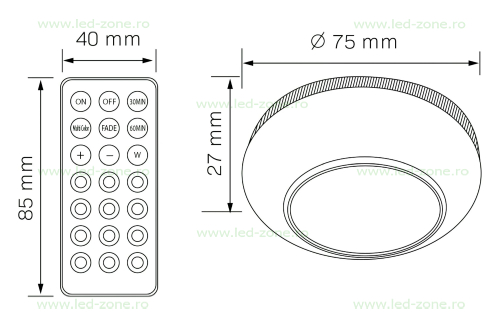 Specificatii Lampa LED de Veghe 0.5W RGBW Touch si Telecomanda