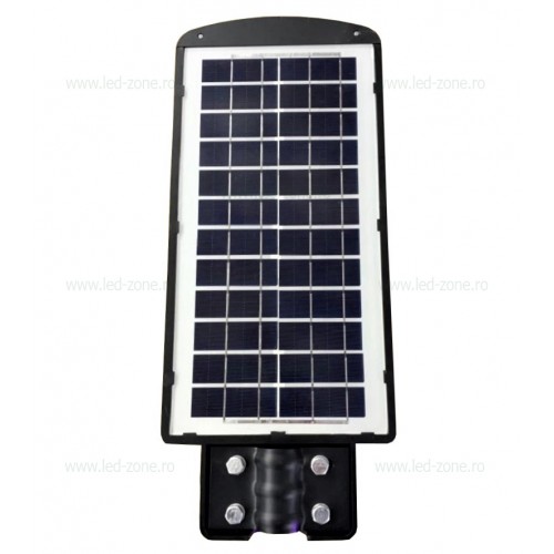 Lampa LED iluminat stradal 60W are senzor de miscare inclus, cu detectie 6-8 metri, timp de incarcare la lumina 8h cu autonomie de functionare pana la 12 ore. Functioneaza cand detecteaza intuneric cu ajutorul senzorului crepuscular, la 30% din putere, iar cand detecteaza miscare se aprinde la putere maxima. Se monteaza cu consola de ⌀50mm.
