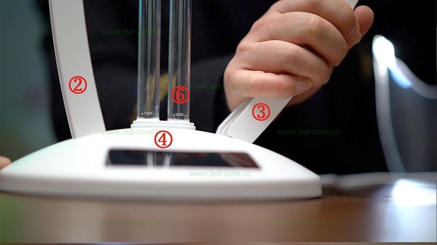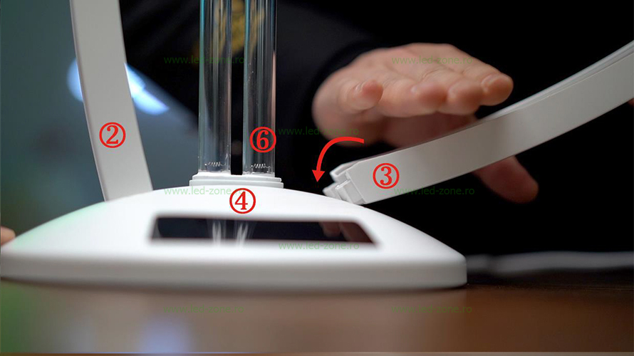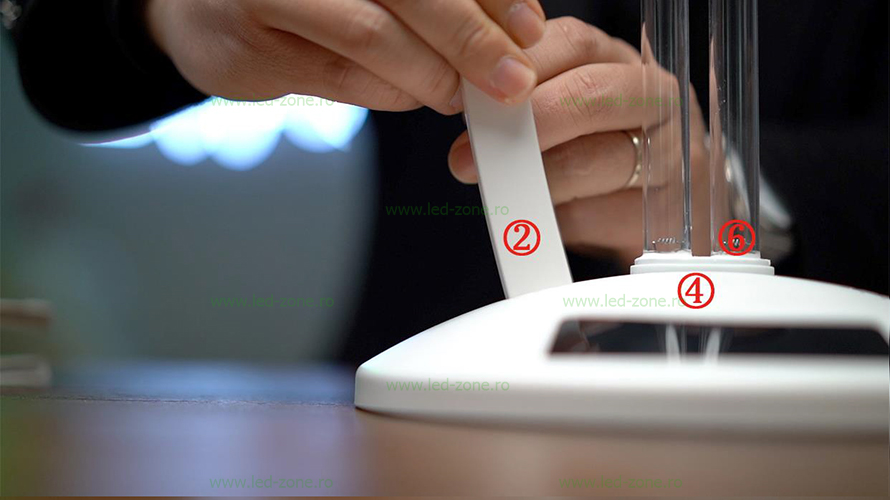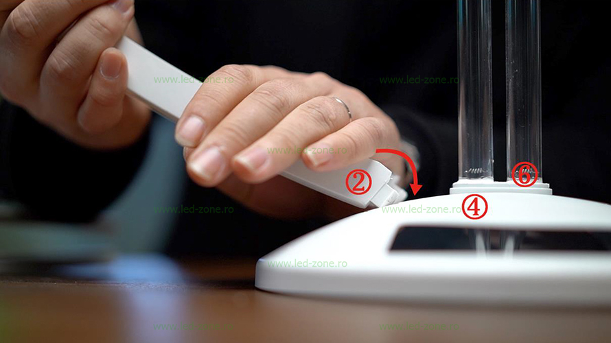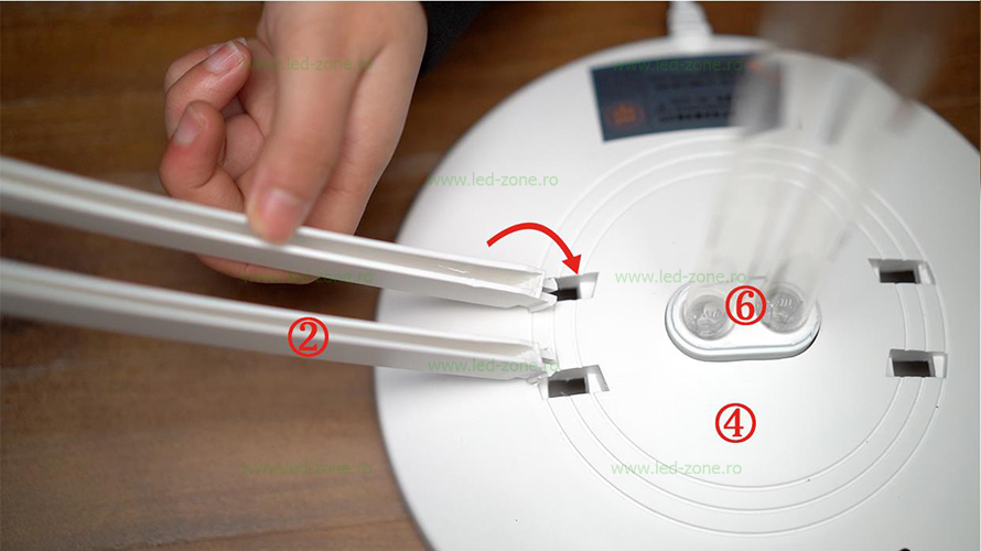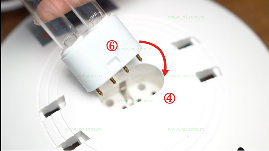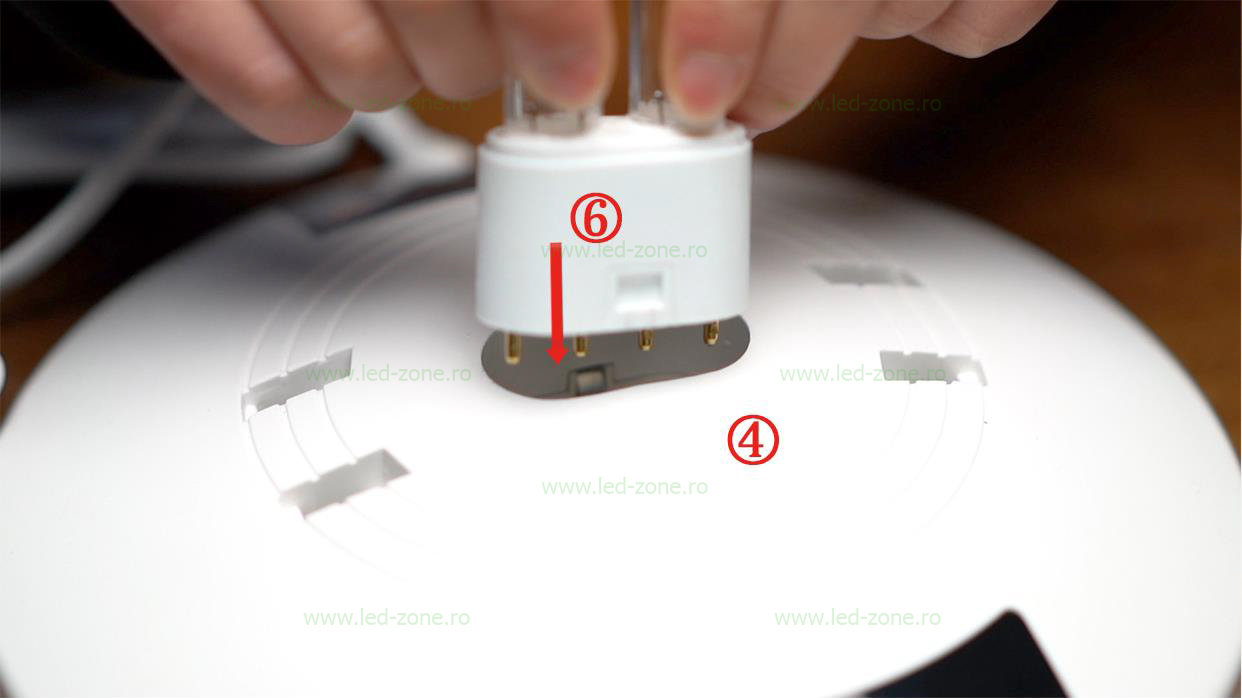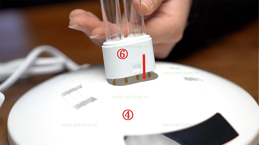 2. Montarea tubului cu 4 pini în soclul din baza lămpii.