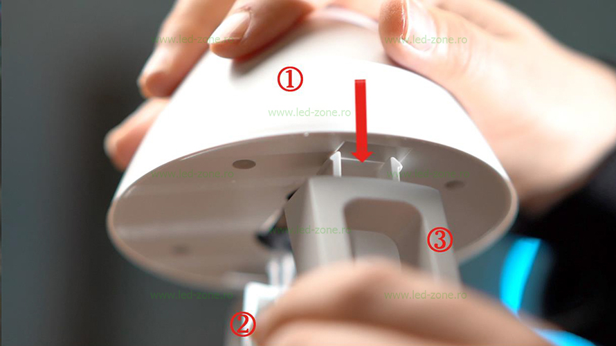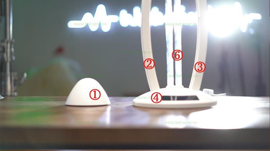 5. Lampa montată se alimentează la tensiune (în priză) și se pornește din telecomandă (tasta ON),
