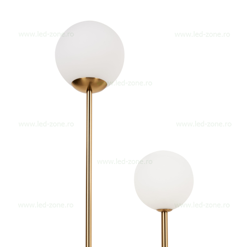 Materiale: structură din metal finisat auriu, globuri din sticlă suflată