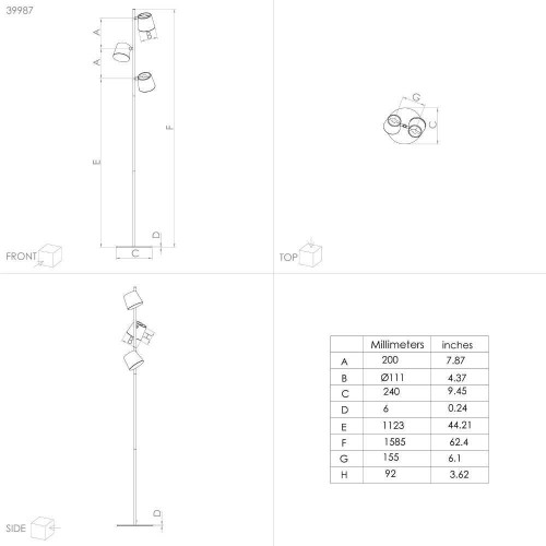 Lampadar ALTAMIRA 39987, H1585 mm, GU10, 3X4,6W, IP20, oțel negru, alamă, plastic alb