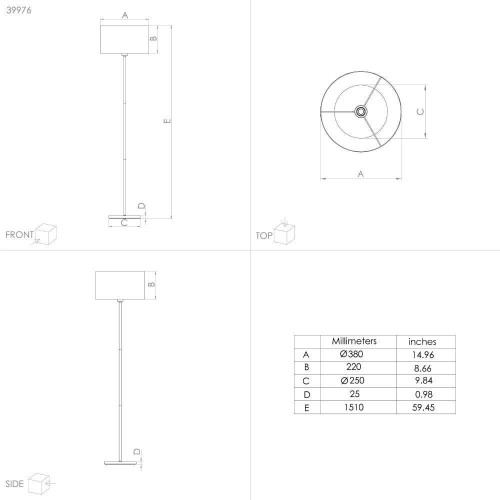 Lampadar CASUARITA 39976, H1510 mm, Ø380 mm, E27, 1X40W, IP20, oțel negru, textil albastru, auriu
