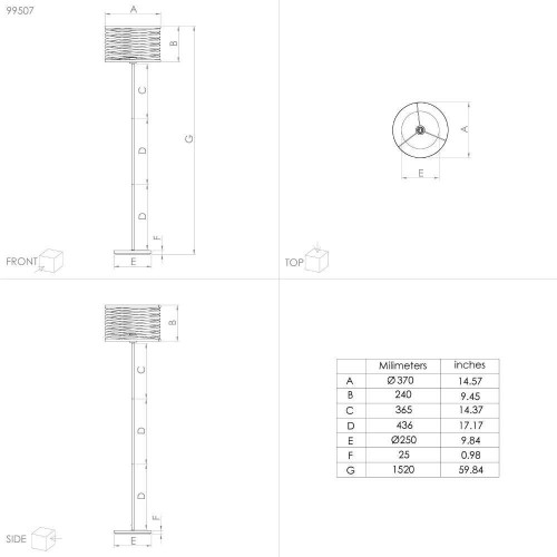 Lampadar CREMELLA 99507, H1510 mm, Ø370 mm, E27, 1X40W, IP20, oțel negru